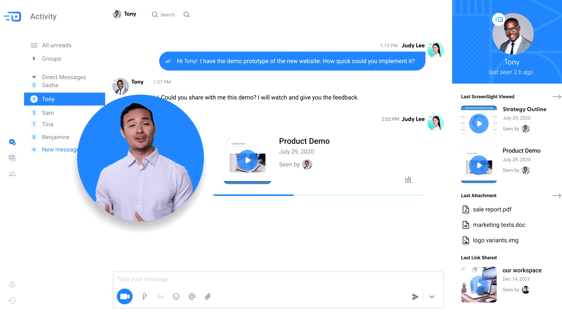 A modern video and screen recording tool to help you put your point across.